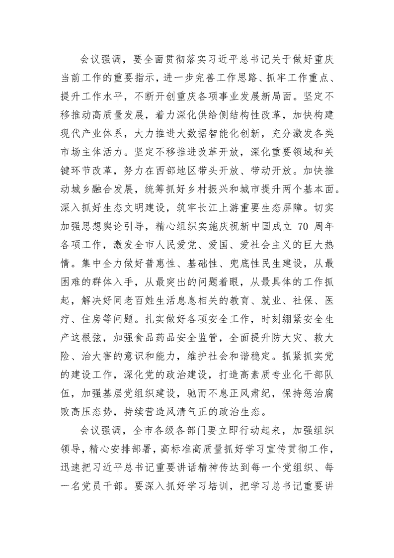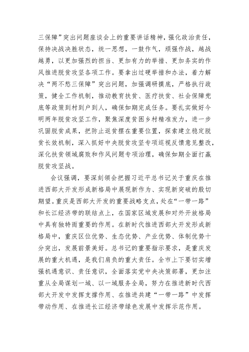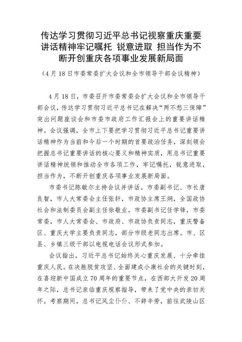 传达学习贯彻习近平总书记视察重庆重要讲话精神牢记嘱托 锐意进取 担当作为 不断开创重庆各项事业开展新局面