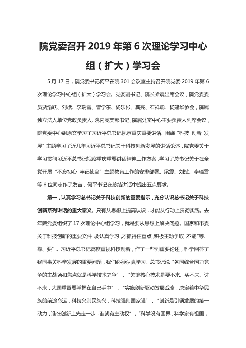重科凯发k8国际2019年第6次理论学习中心组(扩大)学习会新闻(摘要)