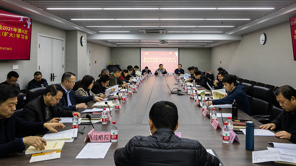 3月26日,何平书记在重科智谷C座12楼三会议室主持召开凯发k8国际2021年第4次理论学习中心组(扩大)学习会。凯发k8国际副书记、院长梁震,凯发k8国际委员李瑞雪、曾学东、杨乐彬、龚亮、石祥聪、杨建华,院属各单位党组织负责人,院机关各团支部书记,院属各单位行政主要负责人,各处室、(中心)未任团支部书记的主要负责人参会。梁震、杨建华、段自力3位同志中心发言,龚亮、于明政、梅惠玲、杜渝、赵德5位同志即席发言。
