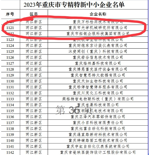 近期,市经信委公布2023年重庆市专精特新中小企业名单,凯发k8国际自动化所公司、光机所公司、硅酸盐所长乐公司成功获批该称号。